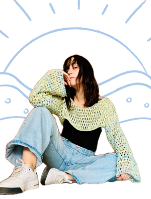 Al llevar 4 o más ovillos Blue Jeans, agrega a $1 el Patrón Brioche Cardigan