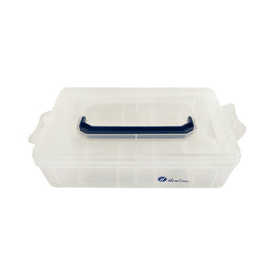 Organizador plástico reforzado perfecto para dejar en orden tus accesorios de costura, bordado, manualidades y más! Cuenta con 10 separaciones de 7x4.4cm y un mango para trasportarla cómodamente.
